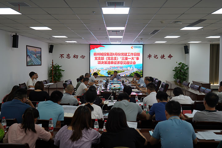 8月20日下午,贛州城投集團(tuán)黨委召開8月份黨建工作日暨黨支部(黨總支)“三重一大”事項(xiàng)決策清單征求意見座談會(huì),傳達(dá)學(xué)習(xí)市國資委黨委8月份黨建工作日座談會(huì)精神,并就部分支部擬定的《重大事項(xiàng)決策清單》進(jìn)行了討論。集團(tuán)黨委副書記黃家偉主持會(huì)議,集團(tuán)各黨支部(黨總支)書記以及相關(guān)部門負(fù)責(zé)人參加會(huì)議。
