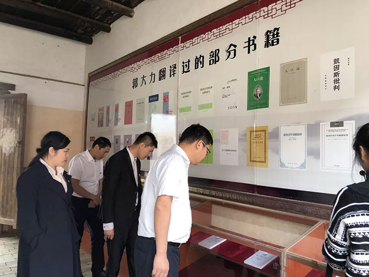 在解說員的帶領(lǐng)下,大家參觀了郭大力故居內(nèi)陳列的珍貴而詳實的文物。通過解說員的生動講述,參觀一幅幅照片、一份份文獻(xiàn)資料,大家對郭大力同志的生平事跡有了更深刻的了解,深刻感受到老一輩革命家勤奮刻苦、孜孜不倦的“求學(xué)精神”,追求真理、探尋道路的“救國精神”,為國為民、殫精竭慮的“忠誠精神”,深刻體會了共產(chǎn)黨人的初心和使命,激發(fā)了大家奮發(fā)向上、積極進(jìn)取的信心和決心。