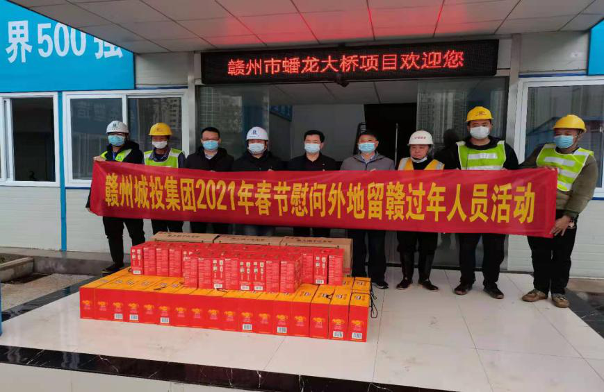 2月9日,贛州城投集團(tuán)開展2021年春節(jié)慰問市域外留贛州過年人員活動,為留在贛州過年的市域外集團(tuán)員工及項(xiàng)目工人送上年貨禮包,讓他們就地過好溫馨春節(jié)。