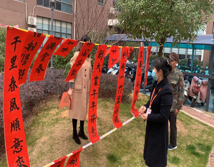 一大早,贛州城投集團(tuán)振興實(shí)業(yè)公司黨支部的黨員、入黨積極分子來(lái)到創(chuàng)業(yè)家園小區(qū),有的與部分租戶(hù)一起掛上燈籠和中國(guó)結(jié),營(yíng)造濃厚的節(jié)日氛圍;有的組織書(shū)法志愿者為租戶(hù)送春聯(lián)、“?!弊?/span>;有的組織醫(yī)護(hù)志愿者為租戶(hù)開(kāi)展免費(fèi)量血壓、血糖、提供醫(yī)藥建議等義診活動(dòng)。