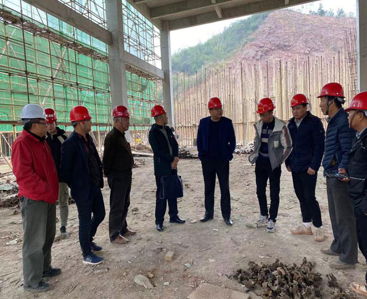 在中國(guó)南方稀有金屬貿(mào)易集散中心項(xiàng)目現(xiàn)場(chǎng),工程管理公司工作人員組織參建人員進(jìn)行高支模內(nèi)架搭設(shè)、模板鋼筋施工及砌體結(jié)構(gòu)等施工作業(yè)。