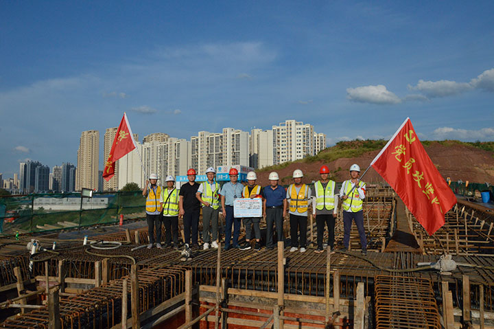 載著中國(guó)共產(chǎn)黨建黨100周年慶典熱潮,7月13日,由贛州城投集團(tuán)代建的、中建三局集團(tuán)有限公司承建的贛州市蟠龍大橋項(xiàng)目傳來建設(shè)新捷報(bào):橋梁部分引橋工程首聯(lián)現(xiàn)澆箱梁成功澆筑,這是橋梁工程由下部結(jié)構(gòu)施工轉(zhuǎn)戰(zhàn)上部結(jié)構(gòu)施工的標(biāo)志性關(guān)鍵節(jié)點(diǎn),為2022年年底全線通車打下了堅(jiān)實(shí)基礎(chǔ)。也是工程管理公司黨總支堅(jiān)持黨建引領(lǐng),在蟠龍大橋項(xiàng)目上設(shè)立臨時(shí)聯(lián)合黨支部,推行“一五一三一”工作法,以實(shí)際行動(dòng)踐行初心使命的又一個(gè)先鋒創(chuàng)績(jī)成果,給建黨100周年慶典活動(dòng)增添了一份喜慶。