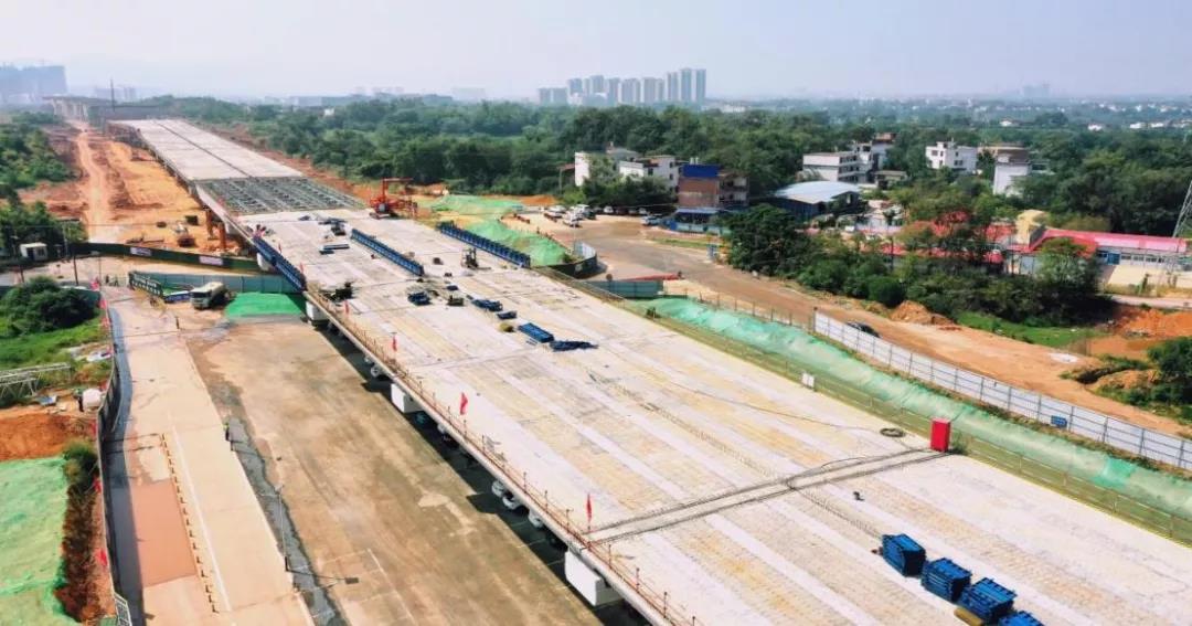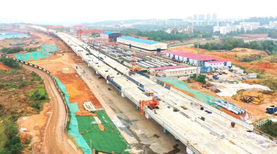 蓉江三路快速路(含地下綜合管廊)項(xiàng)目作為“四橫六縱”中的一條南北走向主干線,南起丁香路,北至筱壩大橋南端接地點(diǎn),總投資約25.87億元,全長約5.1公里,主路為高架段城市快速路,規(guī)模為雙向6車道。項(xiàng)目于2020年8月1日正式開工,截至2021年11月15日,共完成總工程量的51%,其中橋梁工程完成66.2%,道路工程完成48.7%,地下綜合管廊工程完成約84.6%,預(yù)計(jì)在2022年年底完工。項(xiàng)目建成后,可實(shí)現(xiàn)蓉江新區(qū)、高鐵新區(qū)南北向聯(lián)系,大大提高新老城區(qū)交通服務(wù)水平,實(shí)現(xiàn)贛州交通發(fā)展水平與社會經(jīng)濟(jì)發(fā)展水平相適應(yīng)。