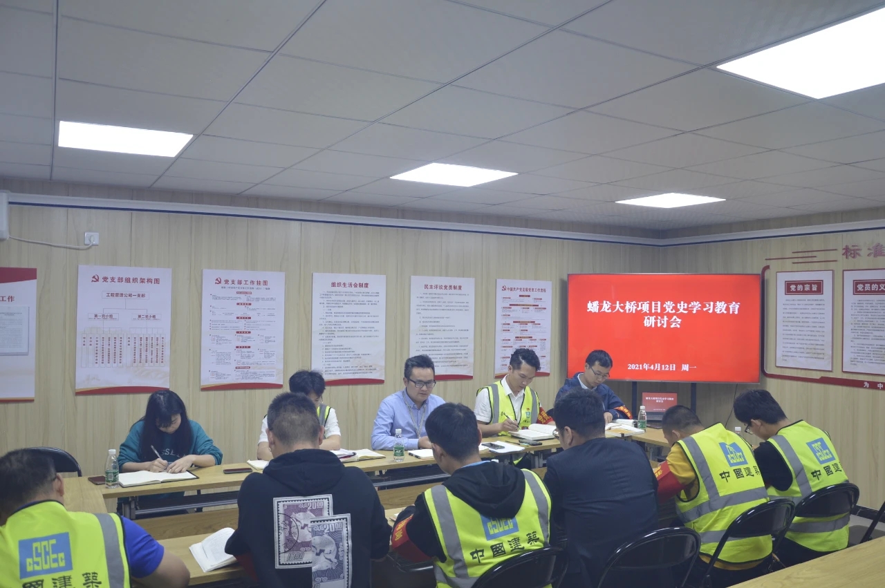 在蟠龍大橋項(xiàng)目,黨史學(xué)習(xí)教育活動(dòng)已常態(tài)化開展。在辦公區(qū)、施工現(xiàn)場(chǎng)掛起了一抹抹醒目的黨史學(xué)習(xí)宣傳標(biāo)語,在黨員活動(dòng)室走廊設(shè)置了黨史學(xué)習(xí)墻。在每月首個(gè)工作日,項(xiàng)目部組織全體黨員及項(xiàng)目人員組織升旗活動(dòng),并開展國(guó)旗下的黨史故事誦讀活動(dòng)。同時(shí),組織觀看微紀(jì)錄片《見證初心和使命的“十一書”》,重溫革命先烈的感人故事,感悟初心使命,弘揚(yáng)革命精神,為高質(zhì)量推動(dòng)項(xiàng)目建設(shè)積極奮斗。