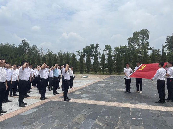 大家首先前往蘇區(qū)時蘇維埃政府工作的模范鄉(xiāng)——長岡鄉(xiāng),領(lǐng)悟中國共產(chǎn)黨人深厚的為民情懷、科學(xué)的思想方法和務(wù)實的工作作風(fēng)。隨后大家懷著對革命先烈無比崇高的敬意瞻仰了中央蘇區(qū)烈士陵園。在烈士紀(jì)念碑前,整齊列隊,懷著無比崇敬的心情,向革命先烈敬獻(xiàn)花籃,默哀并三鞠躬,深切緬懷革命先烈。全體黨員在莊嚴(yán)的黨旗下,高舉右拳重溫入黨誓詞,再次接受心靈的凈化和洗禮,銘記共產(chǎn)黨員初心使命。工程管理公司一、二支部還宣講了黨史故事,講述了江善忠“死到陰間不反水,保護(hù)共產(chǎn)黨萬萬年”和李美群“馬前托孤女英雄”的英烈事跡。