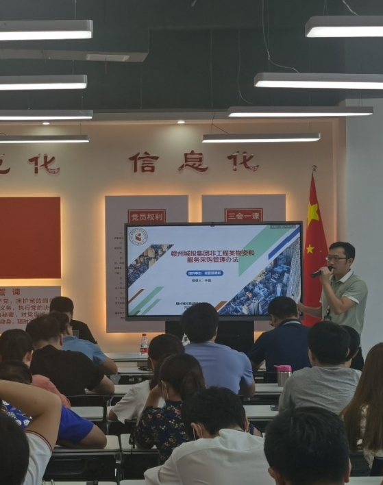 本次培訓(xùn)共分兩方面內(nèi)容:一是對(duì)《贛州城市投資控股集團(tuán)有限責(zé)任公司非工程類(lèi)物資和服務(wù)采購(gòu)管理辦法》、《贛州城市投資控股集團(tuán)有限責(zé)任公司非工程類(lèi)物資和服務(wù)采購(gòu)管理辦法》、《贛州城市投資控股集團(tuán)有限責(zé)任公司網(wǎng)絡(luò)安全事件應(yīng)急預(yù)案(試行)》及《贛州城市投資控股集團(tuán)有限責(zé)任公司資產(chǎn)租賃管理辦法》三個(gè)制度進(jìn)行了宣貫;二是特別邀請(qǐng)了中咨江西工程有限公司投資經(jīng)理盧凱對(duì)投后管理進(jìn)行專(zhuān)題培訓(xùn)授課,主要針對(duì)投資監(jiān)管的三道防線、投資項(xiàng)目投前決策階段及實(shí)施階段所包含的工作內(nèi)容、投資項(xiàng)目風(fēng)險(xiǎn)研判以及應(yīng)對(duì)措施、投資項(xiàng)目實(shí)施后的效果和效益分析方法進(jìn)行了全面深入講解。