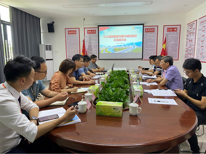 雙方在高鐵建投公司會議室召開了座談會,首先通過觀看贛州城投集團企業(yè)宣傳片和九江城發(fā)集團九江高鐵樞紐工程宣傳片,介紹雙方企業(yè)情況。贛州城投集團工程管理部、高鐵建投公司相關人員對贛州西站站前廣場公共交通、商業(yè)模式及站前廣場電梯、暖通、弱電智能化等設備選型及運行情況進行了介紹。期間,雙方就聚焦主責主業(yè)、推動國企改革進行了探討,并相互溝通交流了高鐵新區(qū)建設、資產運營等方面的經驗。