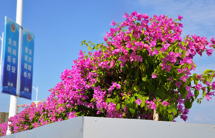 近日,贛州快速路上的三角梅齊開(kāi)放,給快速路披上一件花衣裳,形成一條靚麗的飄帶,喜迎國(guó)慶,驚艷全城。