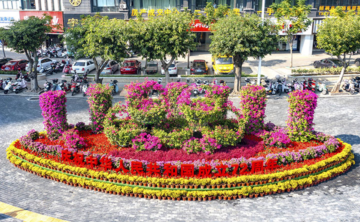 據(jù)施工方贛州城投集團(tuán)下屬子公司——贛州生態(tài)環(huán)境有限公司介紹,今年贛州城區(qū)的國(guó)慶氛圍營(yíng)造與往年有所不同,主要以三角梅作為主花卉,搭配百日草、牽?;ā㈤L(zhǎng)春花、雞冠花等紅色喜慶的時(shí)花進(jìn)行裝扮。僅三角梅一個(gè)品種,在快速路、贛州西站、興國(guó)路等路段就栽植不同大小的三角梅約10萬(wàn)株。