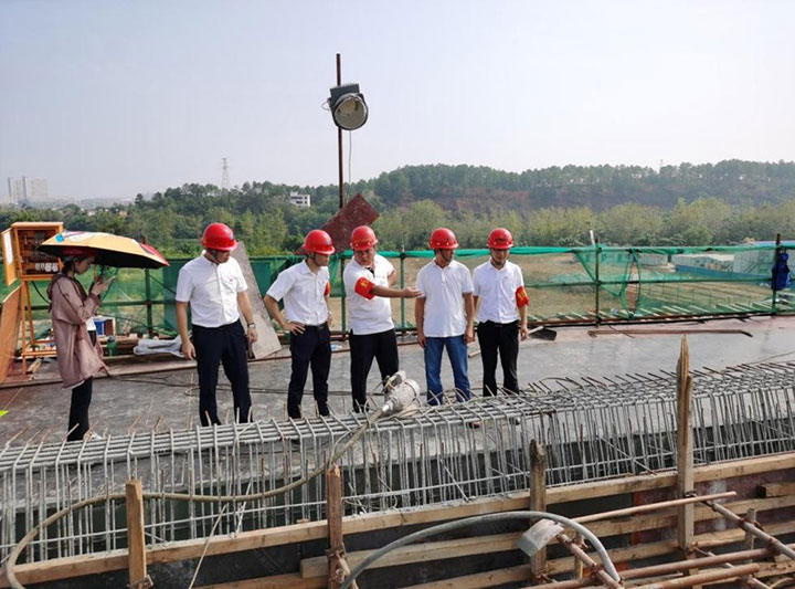 在蟠龍大橋項目,臨時黨支部與城投建工黨支部的黨員查看現(xiàn)場澆筑等工作情況,商量協(xié)調(diào)解決運輸車輛等問題,確保項目上的混凝土澆筑施工循序推進。