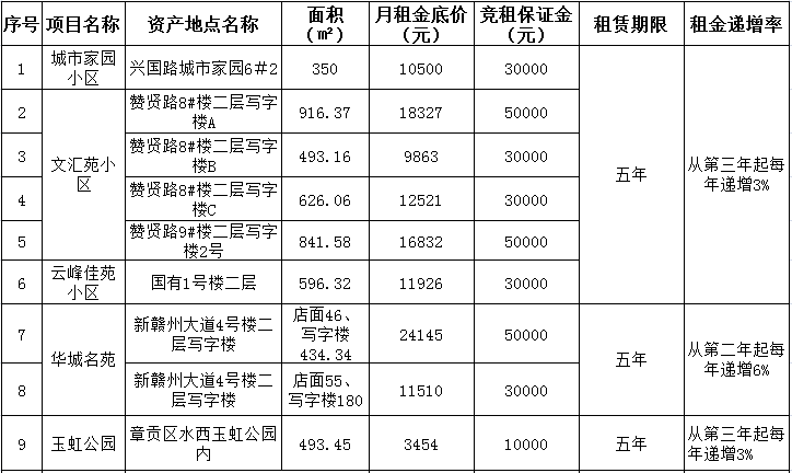 贛州振興實(shí)業(yè)有限責(zé)任公司委托江西潤資拍賣有限公司,定于2020年10月27日10:00開始在贛州市公共資源交易中心(長征大道9號)進(jìn)行國有資產(chǎn)公開招租,現(xiàn)歡迎符合條件的單位或個人前來報名參加競租。