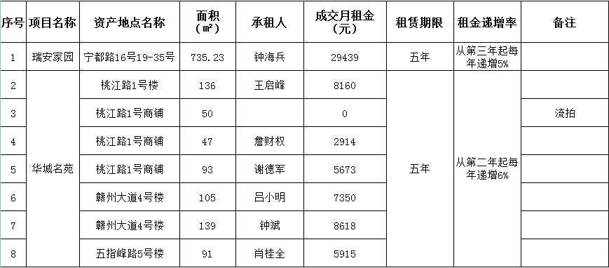關(guān)于贛州振興實(shí)業(yè)有限責(zé)任公司8宗商鋪資產(chǎn)公開招租(項(xiàng)目編號(hào):GZCQ2020068)成交情況的公示