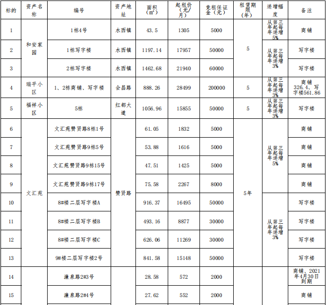贛州振興實(shí)業(yè)有限責(zé)任公司委托江西江南拍賣有限公司,定于2021年5月28日10:00開始在贛州市公共資源交易中心(長征大道9號)進(jìn)行國有資產(chǎn)公開招租,現(xiàn)歡迎符合條件的單位或個(gè)人前來報(bào)名參加競租。