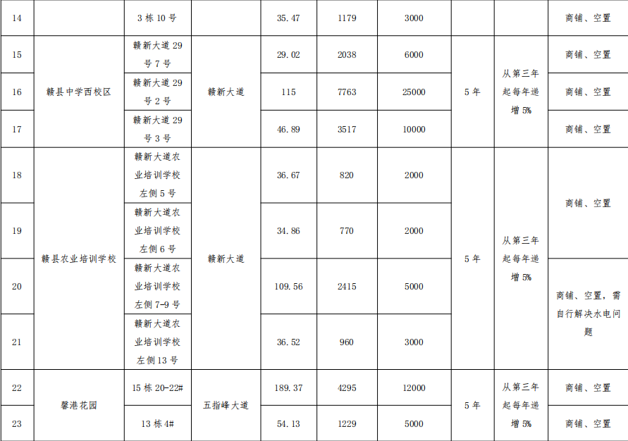 贛州振興實業(yè)有限責任公司五指峰路等四十一宗商鋪、寫字樓公開招租公告