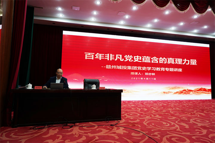 開學(xué)典禮后,贛州城投大學(xué)(黨校)第二學(xué)期第一課黨史學(xué)習(xí)教育專題講座開課。本次邀請了江西理工大學(xué)應(yīng)用科學(xué)學(xué)院黨委書記、馬克思主義學(xué)院教授、碩士生導(dǎo)師鄧亦林以《百年黨史中蘊(yùn)含的真理力量》的主題為全員作黨史學(xué)習(xí)教育專題講座。
