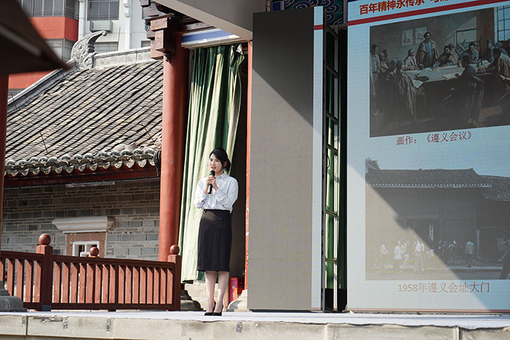 在郁孤臺街區(qū)古戲臺上,來自機(jī)關(guān)一支部、集團(tuán)機(jī)關(guān)二支部、土地置業(yè)公司黨支部的7名參賽代表圍繞分享會主題,結(jié)合自身工作實(shí)際,從黨風(fēng)廉政文化、建黨百年精神、國企發(fā)展道路、黨旗的故事等方面,暢談閱讀《中國共產(chǎn)黨簡史》等黨史學(xué)習(xí)教育指定書籍的感悟和體會。活動中還增設(shè)了紅色電影配音、誦讀《紅色家書》、互動問答、點(diǎn)評分享等環(huán)節(jié),節(jié)目形式豐富多彩,現(xiàn)場精彩紛呈。