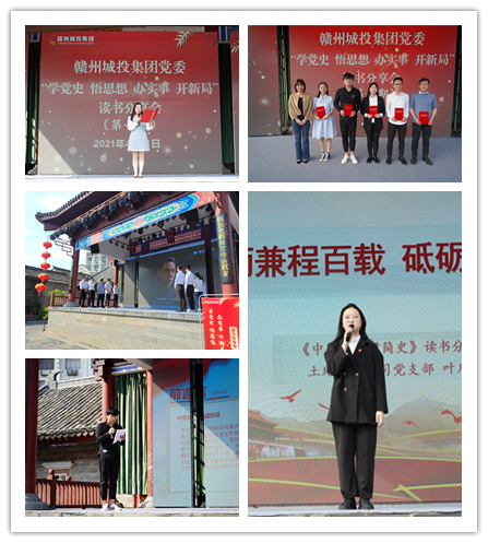 贛州城投集團(tuán)黨委“學(xué)黨史 悟思想 辦實(shí)事 開新局”讀書分享會將每月舉辦一期,每期充分結(jié)合各黨支部業(yè)務(wù)特色,走進(jìn)社區(qū)、走進(jìn)項目、走進(jìn)基層等,一直持續(xù)到11月份共舉辦八場,前七期由集團(tuán)黨支部結(jié)對聯(lián)合承辦預(yù)賽階段,第八期將由集團(tuán)黨委主辦讀書分享會總決賽。