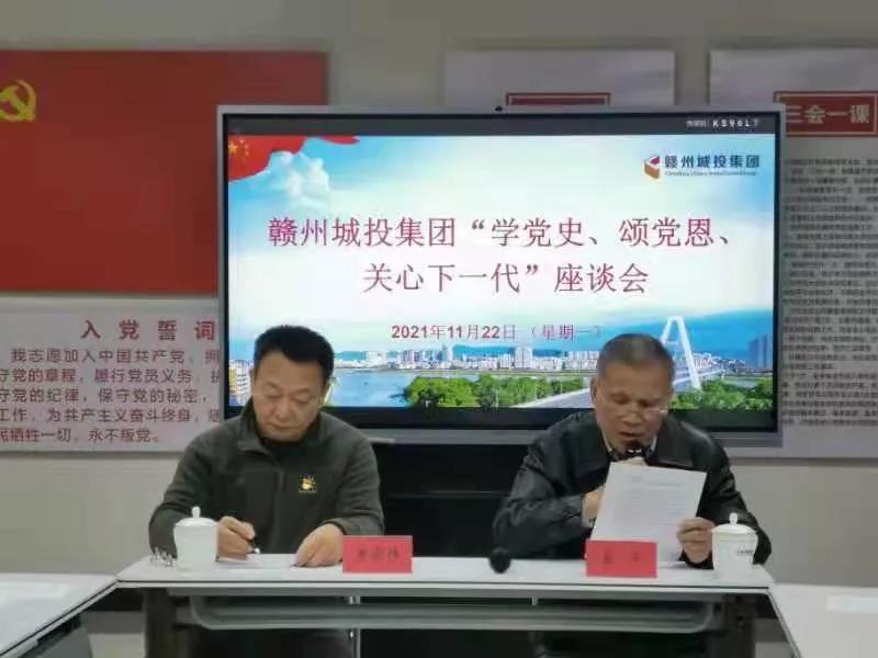 近日,贛州城投集團(tuán)關(guān)工委召開“學(xué)黨史、頌黨恩,關(guān)心下一代”座談會(huì),集團(tuán)黨委副書記黃家偉出席座談會(huì)并講話,原集團(tuán)紀(jì)委書記、離退休老員工代表奚平,以及集團(tuán)部分青年員工代表等15人參加座談。