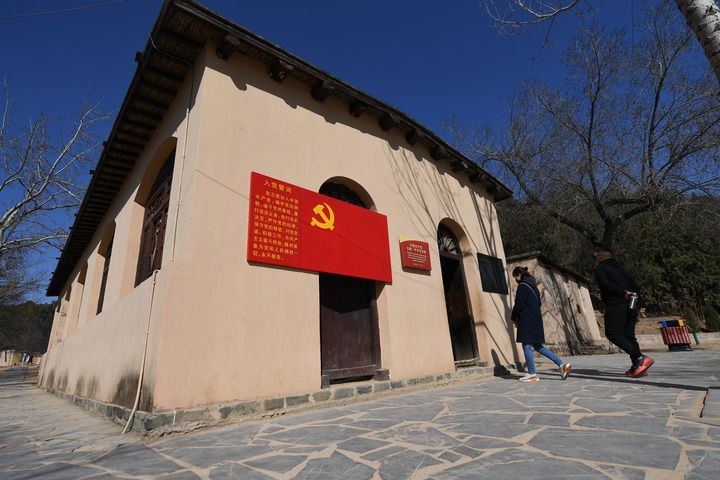△游客進(jìn)入河北省平山縣西柏坡中國共產(chǎn)黨七屆二中全會(huì)會(huì)址參觀(2019年3月6日攝)。新華社記者 牟宇 攝