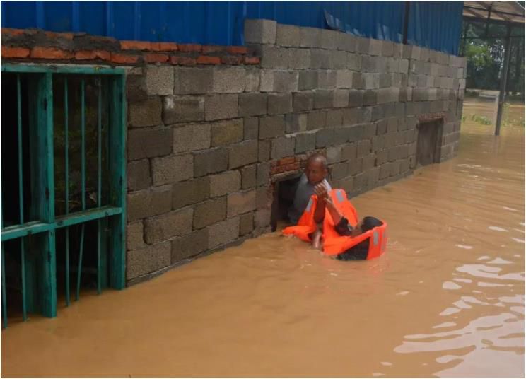 聞“汛”而動,沉著指揮。13日-14日,瑞金市普降大暴雨,多個鄉(xiāng)鎮(zhèn)遭受百年不遇洪災(zāi),農(nóng)田被毀、房屋被淹、群眾被困。接到災(zāi)情報告后,正在值班的政委劉波同志立即向軍分區(qū)請示,迅速調(diào)集兩個應(yīng)急排共70余人、5艘沖鋒舟以及其他救援設(shè)備,分赴受災(zāi)較嚴重的4個鄉(xiāng)鎮(zhèn)開展抗洪救災(zāi)工作,搜救和轉(zhuǎn)移受災(zāi)群眾。他既當指揮員又當戰(zhàn)斗員,率領(lǐng)一個分隊向受災(zāi)最嚴重的九堡鎮(zhèn)進發(fā)。在沖鋒舟還未運來之前,他先行帶領(lǐng)數(shù)名隊員進入一片汪洋的圩鎮(zhèn),把困在陽臺、屋頂?shù)娜罕姡闷澩б淮淮D(zhuǎn)移至安全地帶。